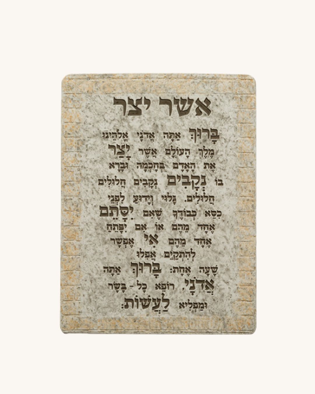ברכת אשר יצר לתלייה אורך 26 ס״מ | רוחב 19 ס״מ חומר: פולירזין