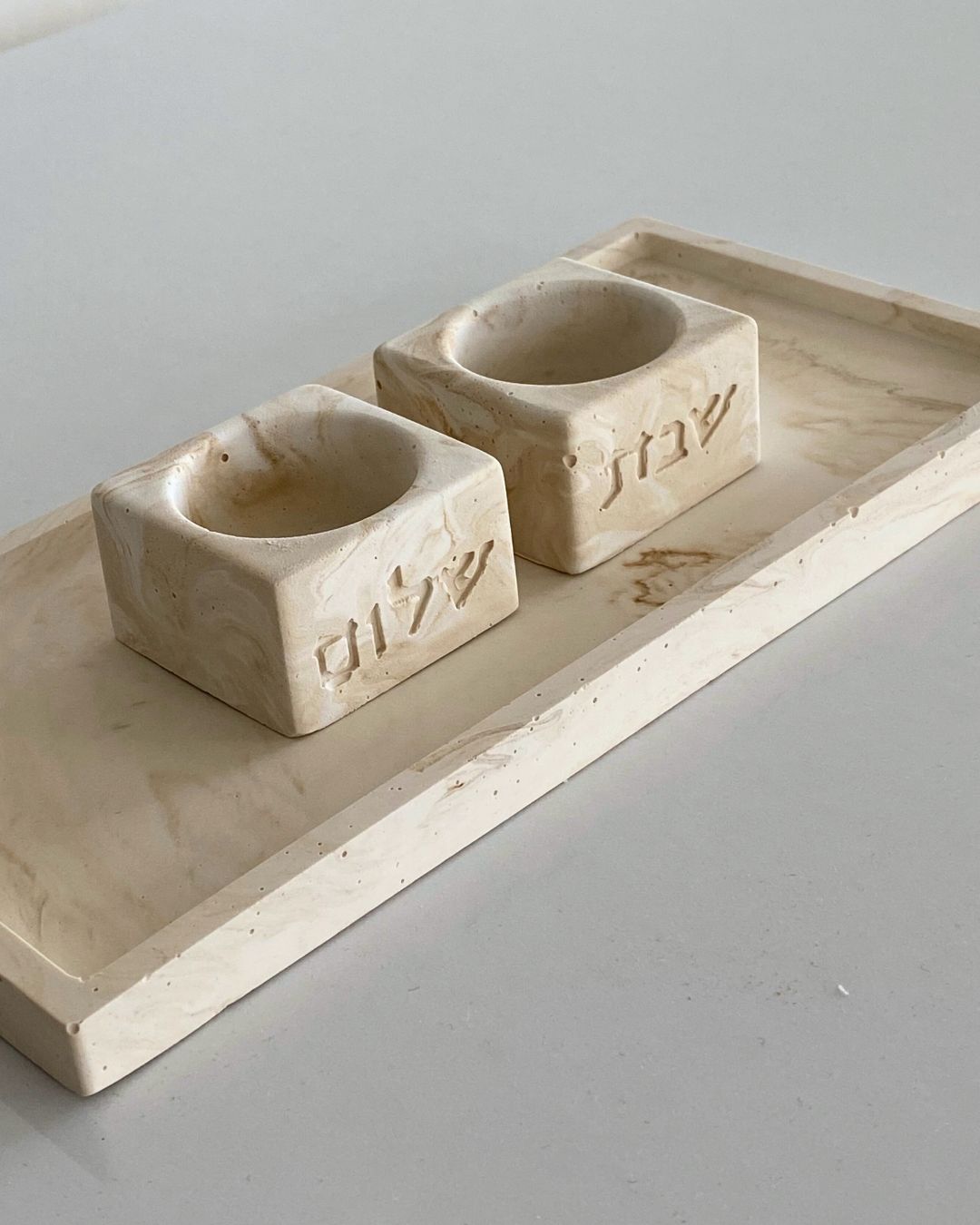 מגש דקורטיבי עם 2 פמוטים של שבת שלום