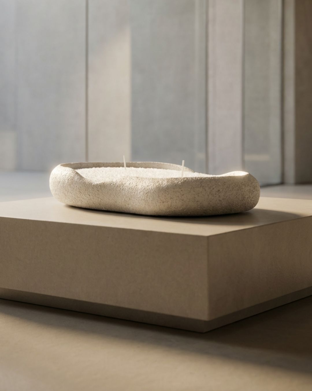כלי דקורטיבי א-סימטרי עשוי בטון פולימרי בעבודת-יד